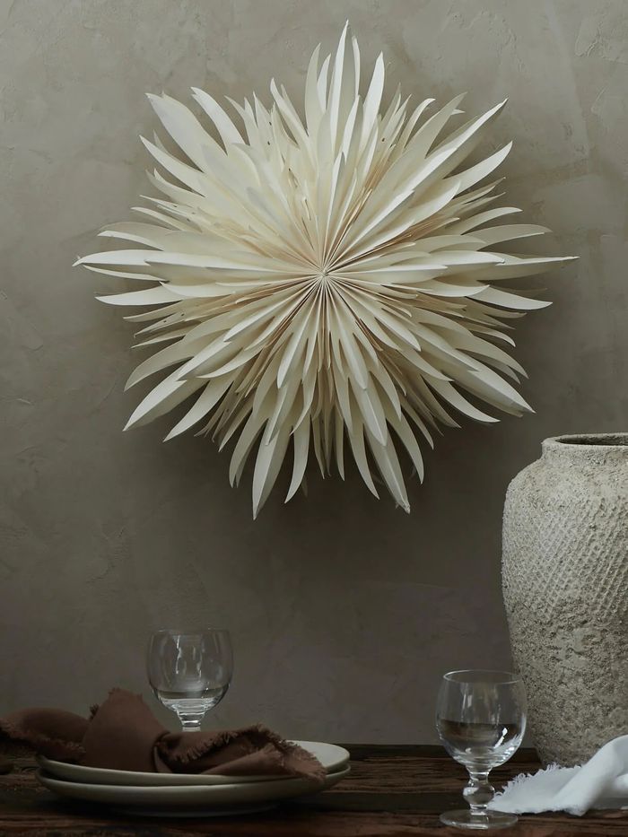 A most magnificent decoration, these large paper snowflakes are beautiful enough to leave up all year round. Made from milky white paper they come flat packed in a presentable cardboard box for easy storage. Simply pull to cords together and attach the velcro stripes and there you have it. A wonderful piece to grace your wall or window. Comes complete in a smart box for easy storing.