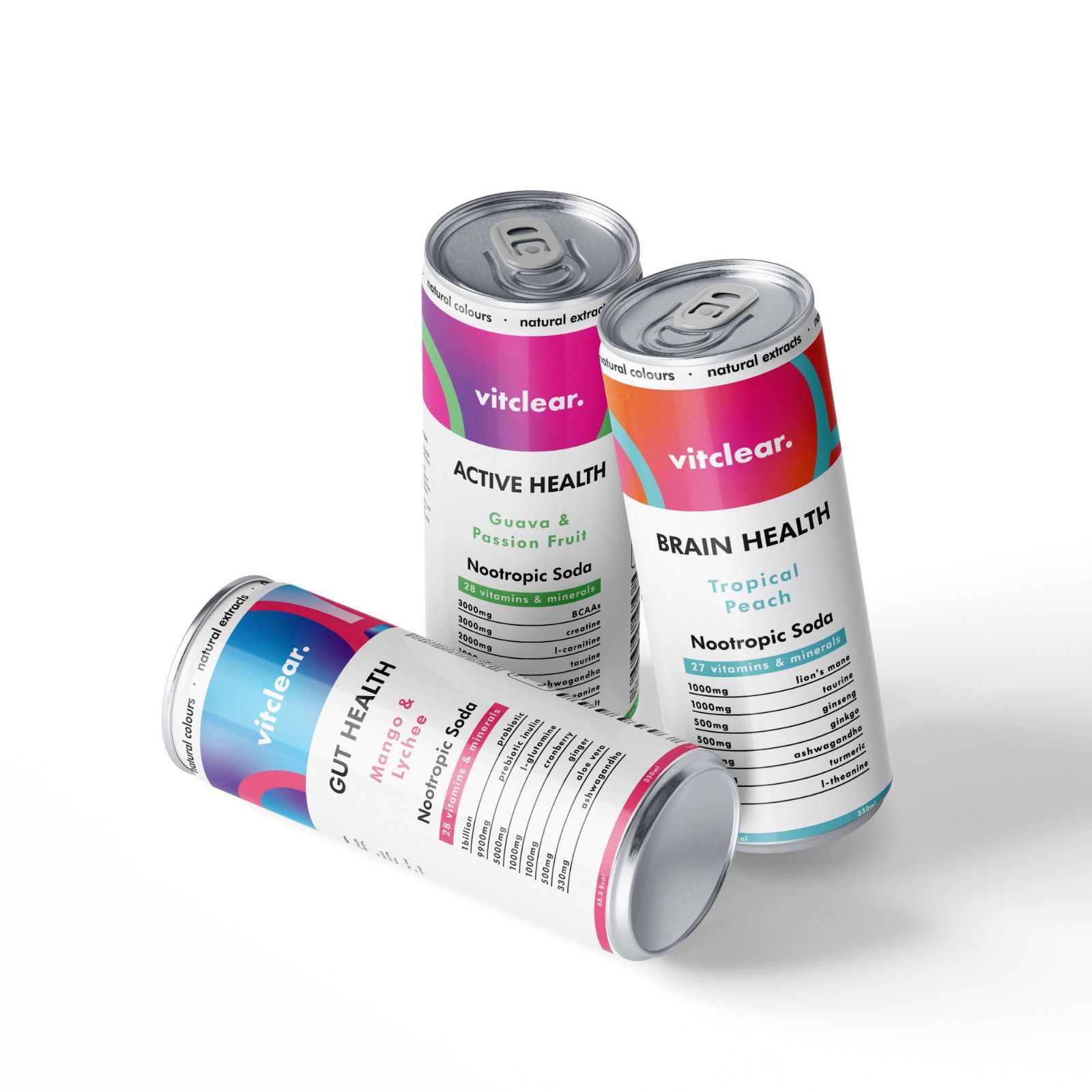 A variety of lightly sparkling low-sugar functional sodas, made with a delicious blend of botanical extracts found in nature. Scientifically formulated to support your brain, gut. and active health.