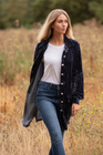 Our stunning hand stitched velvet Bonnie shirt/jacket is a super relaxed fit featuring gorgeous pearl gold buttons, straight hem, side splits and front pockets. Super versatile, wear casually or more formally, dress up or down… great for smart casual. Looks great buttoned, or worn open as a jacket.