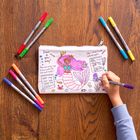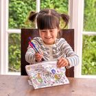 Kids can colour in the mermaids and ocean scene using the 10 included magic wash-out pens – then design their very own mermaid on the back.