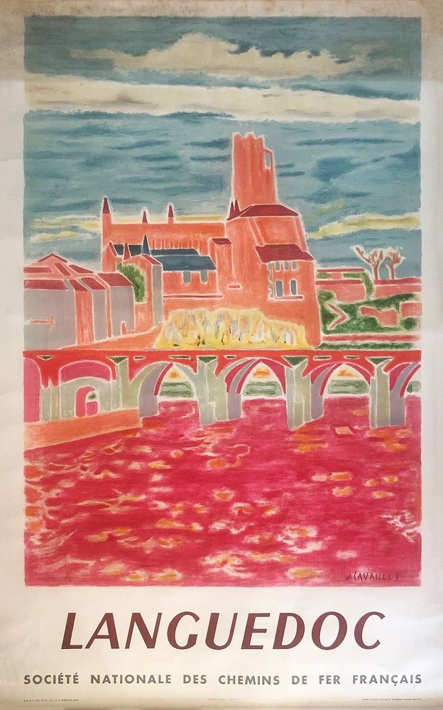 Summer sunshine radiates from the stylised view of the Cathedral and Pont Vieux, Albi in this exceptional design by Cavailles.