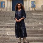 Stunning silk velvet dress in our best selling Annabel shape. So flattering and gives everyone a waist! Featuring silk trim and button detail. This beautiful dress is the perfect winter occasion dress! Pair with your favourite boots, trainers or heels to dress up or down.